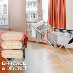 SÉCHAGE DOUX POUR TOUS TYPES DE VÊTEMENTS : Parfait pour tous vos vêtements, des tissus délicats aux pièces plus épaisses, ce séchoir assure un séchage doux sans risquer d’endommager vos tissus, garantissant ainsi leur longévité.