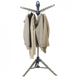 Ce séchoir ou penderie gain de place se déploit pour offrir 3 bras de suspension pour cintres. Utilisant des matériaux particulièrement résistants et durables, il s'utilise en intérieur comme en extérieur. Hauteur ajustable et crochet de suspension.